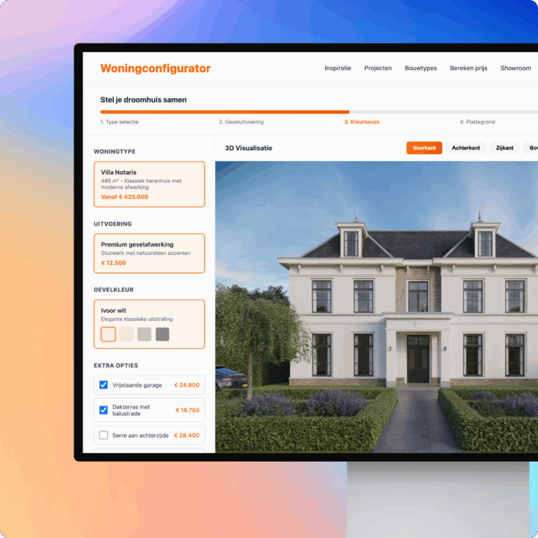 Skrepr ontwikkelde een interactieve woningconfigurator die complexe bouwspecificaties vertaalt naar een Sims-achtige ervaring. Met real-time 3D visualisatie, automatische prijsberekening en directe CRM- en ERP-koppeling configureren klanten razendsnel hun droomhuis.
